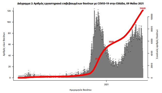Οι νέοι θάνατοι ασθενών με COVID-19 είναι 51, ενώ από την έναρξη της επιδημίας έχουν καταγραφεί συνολικά 11.029 θάνατοι. Το 95.2% είχε υποκείμενο νόσημα ή/και ηλικία 70 ετών και άνω.