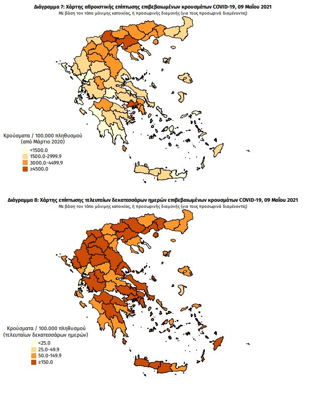 Με βάση τα επιβεβαιωμένα κρούσματα των τελευταίων 7 ημερών, 51 θεωρούνται σχετιζόμενα με ταξίδι από το εξωτερικό και 2.309 είναι σχετιζόμενα με ήδη γνωστό κρούσμα.