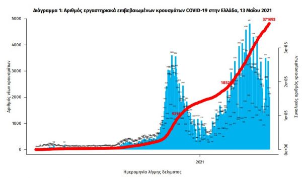 Τα νέα εργαστηριακά επιβεβαιωμένα κρούσματα της νόσου που καταγράφηκαν τις τελευταίες 24 ώρες είναι 2.167, εκ των οποίων 3 εντοπίστηκαν κατόπιν ελέγχων στις πύλες εισόδου της χώρας.