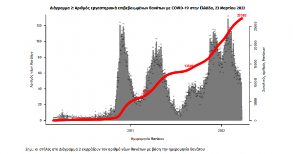 Οι νέοι θάνατοι ασθενών με COVID-19 είναι 53, ενώ από την έναρξη της επιδημίας έχουν καταγραφεί συνολικά 27.083 θάνατοι.