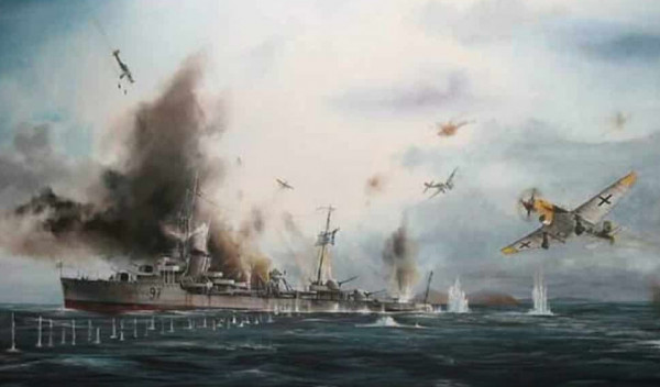 Το ελληνικό αντιτορπιλικό εντοπίστηκε περί τις 17:30 από γερμανικό αναγνωριστικό αεροσκάφος και στη συνέχεια δέχτηκε σφοδρή επίθεση από μεγάλο αριθμό αεροσκαφών καθέτου εφορμήσεως τύπου Junkers Ju 87, ευρέως γνωστών ως στούκας.