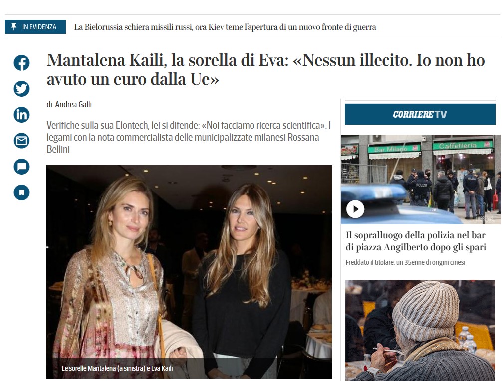 Άλλη μια ευρωπαϊκή εφημερίδα ασχολείται με το διαβόητο Qatargate και την εμπλοκή της Εύας Καϊλή, με την Corriere della Serra να ψάχνει απαντήσεις από την αδερφή της Ελληνίδας ευρωοβουλευτή, Μανταλένα Καϊλή.