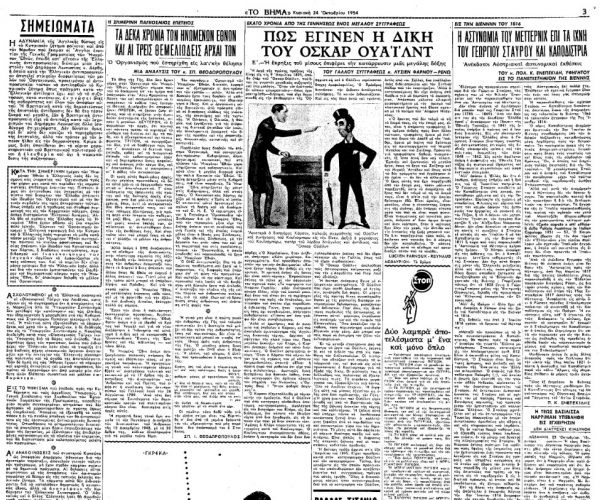 «ΤΟ ΒΗΜΑ», 24.10.1954, Ιστορικό Αρχείο «ΤΟ ΒΗΜΑ» & «ΤΑ ΝΕΑ»