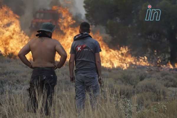 «Τα παιδιά τα έχουμε απομακρύνει. Έχουν πάει οι δικοί μας άνθρωποι και προσπαθούν να τη σώσουν. Δεν υπάρχει κανένα εναέριο μέσο. Χτες το μεσημέρι πέρασε μόνο εναέριο μέσο μία φορά και εξαφανίστηκε. Αυτό που έχουμε καταλάβει είναι πως αφήνουν τα δύο μέτωπα να ενωθούν αφού δεν καίγονται σπίτια. Θέλουμε βοήθεια και για εμάς είναι σημαντικό. Δεν ισχύει αυτό που έγραφαν στις ιστοσελίδες ότι επιχειρούν εναέρια μέσα. Τουλάχιστον εάν δεν μπορούν βοηθήσουν να μην λένε πως έχουμε πέντε εναέρια μέσα. Ας έρθει έστω ένα εναέριο μέσο να μας βοηθήσει».