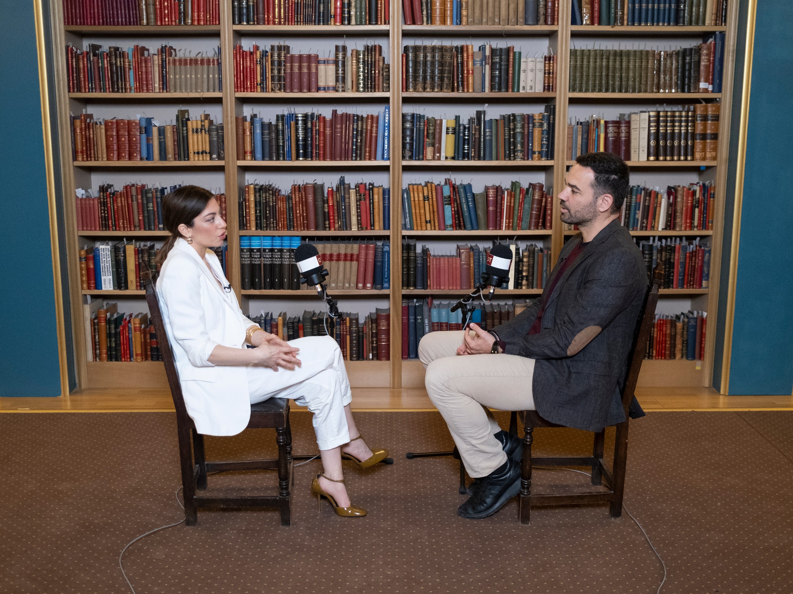 Η δημοσιογράφος του ΟΤ Ελένη Στεργίου με τον Γιάννη Στάθη, CEO του SHOPFLIX.