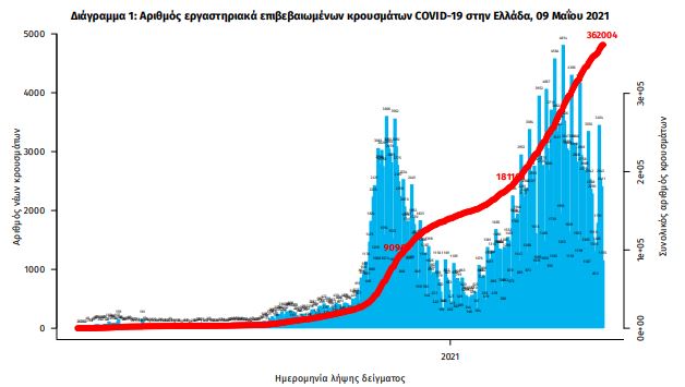 Με βάση τα επιβεβαιωμένα κρούσματα των τελευταίων 7 ημερών, 51 θεωρούνται σχετιζόμενα με ταξίδι από το εξωτερικό και 2.309 είναι σχετιζόμενα με ήδη γνωστό κρούσμα.