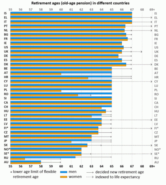 Και σε ολοένα και περισσότερα κράτη, οι κυβερνήσεις αυξάνουν σταδιακά τα ηλικιακά όρια συνταξιοδότησης, σε άνδρες και σε γυναίκες.