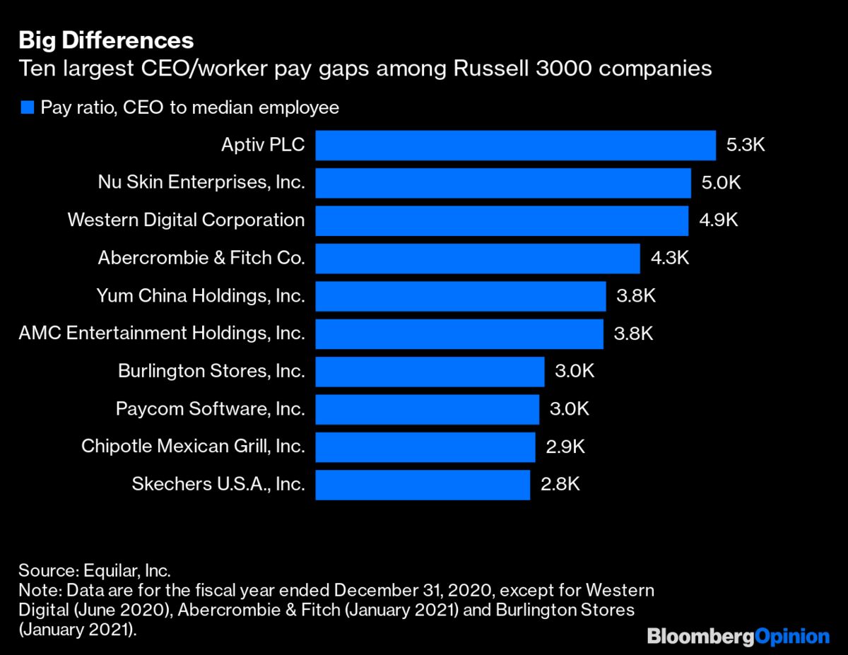 Τα τελευταία τέσσερα χρόνια, oι εταιρείες στις ΗΠΑ είναι υποχρεωμένες να δημοσιεύουν κάτι που ονομάζεται «αναλογία πληρωμής του CEO» – δηλαδή πόσα βγάζει τον χρόνο κατά μέσο όρο ο διευθύνων σύμβουλος σε σχέση με τον μέσο εργαζόμενο.