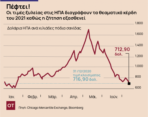 Οι τιμές ξυλείας έκλεισαν τη Δευτέρα 0,6% χαμηλότερα από την αρχή του έτους καθώς η ζήτηση υποχωρεί και η προσφορά επεκτείνεται. Η ανοδική κούρσα στα εμπορεύματα μετέτρεψε ένα σύνηθες προϊόν κατασκευών σε ένα «καυτό» ζήτημα στα κοινωνικά μέσα και ένα σημείο αναφοράς στο διάλογο για τη νομισματική πολιτική στις ΗΠΑ. Σε κάποια στιγμή, τα προθεσμιακά συμβόλαια ξυλείας διαπραγματεύονταν στα 1.733,50 δολάρια/χιλιάδες πόδια σανίδας, περισσότερο από τέσσερις φορές πάνω σε σύγκριση με τον προηγούμενο χρόνο.