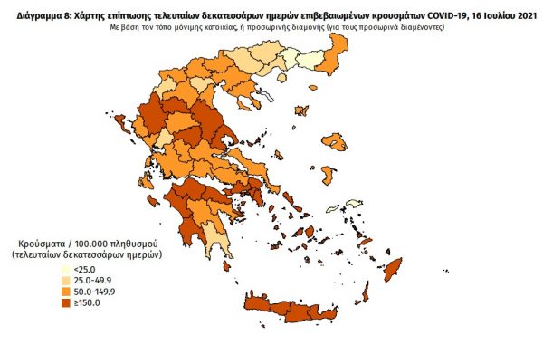 Με βάση τα επιβεβαιωμένα κρούσματα των τελευταίων 7 ημερών, 167 θεωρούνται σχετιζόμενα με ταξίδι από το εξωτερικό και 1.721 είναι σχετιζόμενα με ήδη γνωστό κρούσμα.
