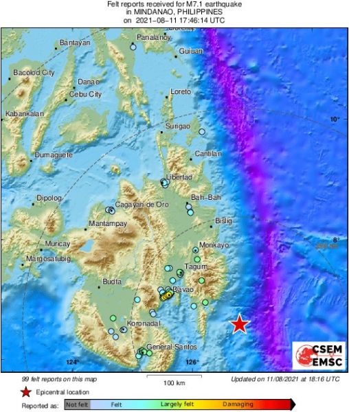 A strong M7.1 #earthquake happened in the #Mindanao, #Philippines region due to the formation of a cluster of critical regions and the occurrence of a high shear-traction cloud just south of the Philippines. pic.twitter.com/dW5Od2eN3H