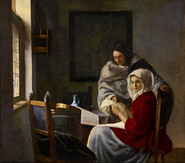 Είναι ένα από τα μόλις 35 έργα που αποδόθηκαν οριστικά στον Βερμέερ: Η παράσταση της Δρέσδης, που ονομάζεται «Johannes Vermeer: On Reflection», ενώνει 10 από αυτά μαζί με έργα σύγχρονων από τους οποίους έμαθε ο Vermeer, συμπεριλαμβανομένων των Pieter de Hooch και Gerard ter Borch.