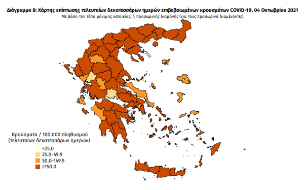 Με βάση τα επιβεβαιωμένα κρούσματα των τελευταίων 7 ημερών, 90 θεωρούνται σχετιζόμενα με ταξίδι από το εξωτερικό και 2.897 είναι σχετιζόμενα με ήδη γνωστό κρούσμα.