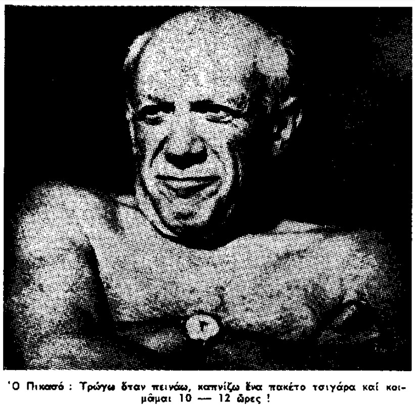 «Αυτά τα λόγια είπε πριν από λίγες ημέρες, σε μία συνέντευξή του, ο διάσημο ζωγράφος Πάμπλο Πικασό, ο οποίος, παρά τη μεγάλη ηλικία του, εξακολουθεί ακόμη και τώρα να εργάζεται σαν να είναι νέος.