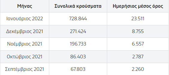 Μια σοκαριστική σύγκριση. Δείτε τον πίνακα που δημοσίευσε το iatronet.gr και παρατηρήστε την «έκρηξη» στον συνολικό αριθμό των κρουσμάτων, αλλά και στον ημερήσιο μέσο όρο, με αυτόν του Ιανουαρίου να φτάνει τις 23.511 μολύνσεις ανά 24ωρο.