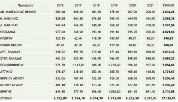 Εάν στις εκτάσεις αυτές συνυπολογισθούν και προστεθούν οι νέες φυτεύσεις που πραγματοποιήθηκαν με βάση το καθεστώς Αδειών Φύτευσης που άρχισε να ισχύει από το έτος 2016 έως το 2021, δηλαδή φυτεύσεις 37.180,79 στρεμμάτων όπως φαίνεται στον πίνακα που ακολουθεί (σ.σ. με την επιφύλαξη ότι για τα έτη 2020, 2021 οι φυτεύσεις θα ολοκληρωθούν έως 31.12.2022), τότε η πραγματική μείωση ανέρχεται σε 64.953,69 στρέμματα, αφού η διαφορά μεταξύ 2012 και 2021 περιλαμβάνει και τις φυτεύσεις μέσω Αδειών Φύτευσης.