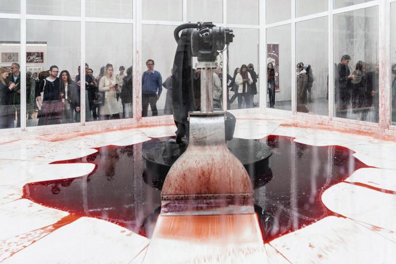Σε αυτό το έργο που ανατέθηκε για το Μουσείο Guggenheim, οι Sun Yuan & Peng Yu χρησιμοποιούν ένα βιομηχανικό ρομπότ, με αισθητήρες οπτικής αναγνώρισης και συστήματα λογισμικού, για να εξετάσουν την ολοένα και πιο αυτοματοποιημένη παγκόσμια πραγματικότητα, στην οποία οι περιοχές ελέγχονται μηχανικά και η σχέση μεταξύ ανθρώπων και μηχανών αλλάζει γρήγορα. Τοποθετημένο πίσω από διαφανείς ακρυλικούς τοίχους, το ρομπότ τους έχει ένα συγκεκριμένο καθήκον, να περιορίζει ένα παχύρρευστο, βαθύ κόκκινο υγρό σε μια προκαθορισμένη περιοχή. Όταν οι αισθητήρες ανιχνεύσουν ότι το υγρό έχει παρεκκλίνει πολύ [σσ: από την προσχεδιασμένη περιοχή], ο βραχίονας το φτυαρίζει μανιωδώς στη θέση του, αφήνοντας μουτζούρες στο έδαφος και πιτσιλιές στους γύρω τοίχους.