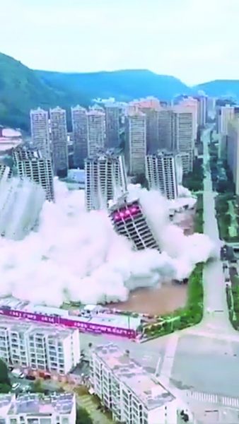 «Σχεδίασε, χτίσε, γκρέμισε και πάλι από την αρχή». Στο ίδιο έργο θεατές είναι εδώ και τουλάχιστον οκτώ χρόνια οι διεθνείς αναλυτές που βλέπουν και πάλι στην Κίνα να δυναμιτίζονται και να καταρρέουν τεράστια οικιστικά συγκροτήματα, ουρανοξύστες που φθάνουν συχνά τα 70 μέτρα σε ύψος.
