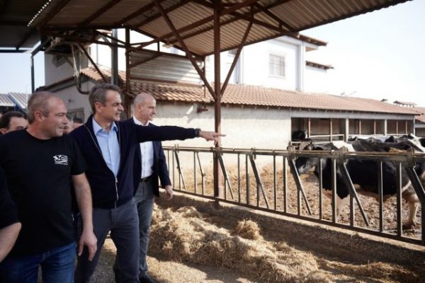 Μετά το Αιγίνιο ο κ. Μητσοτάκης επισκέφθηκε γεωκτηνοτροφική μονάδα της περιοχής, όπου ξεναγήθηκε στις εγκαταστάσεις και ενημερώθηκε για την παραγωγική διαδικασία.«Είμαστε στην καλύτερη χρονιά τα τελευταία 15 χρόνια», είπε στον πρωθυπουργό ένας από τους ιδιοκτήτες της μονάδας.