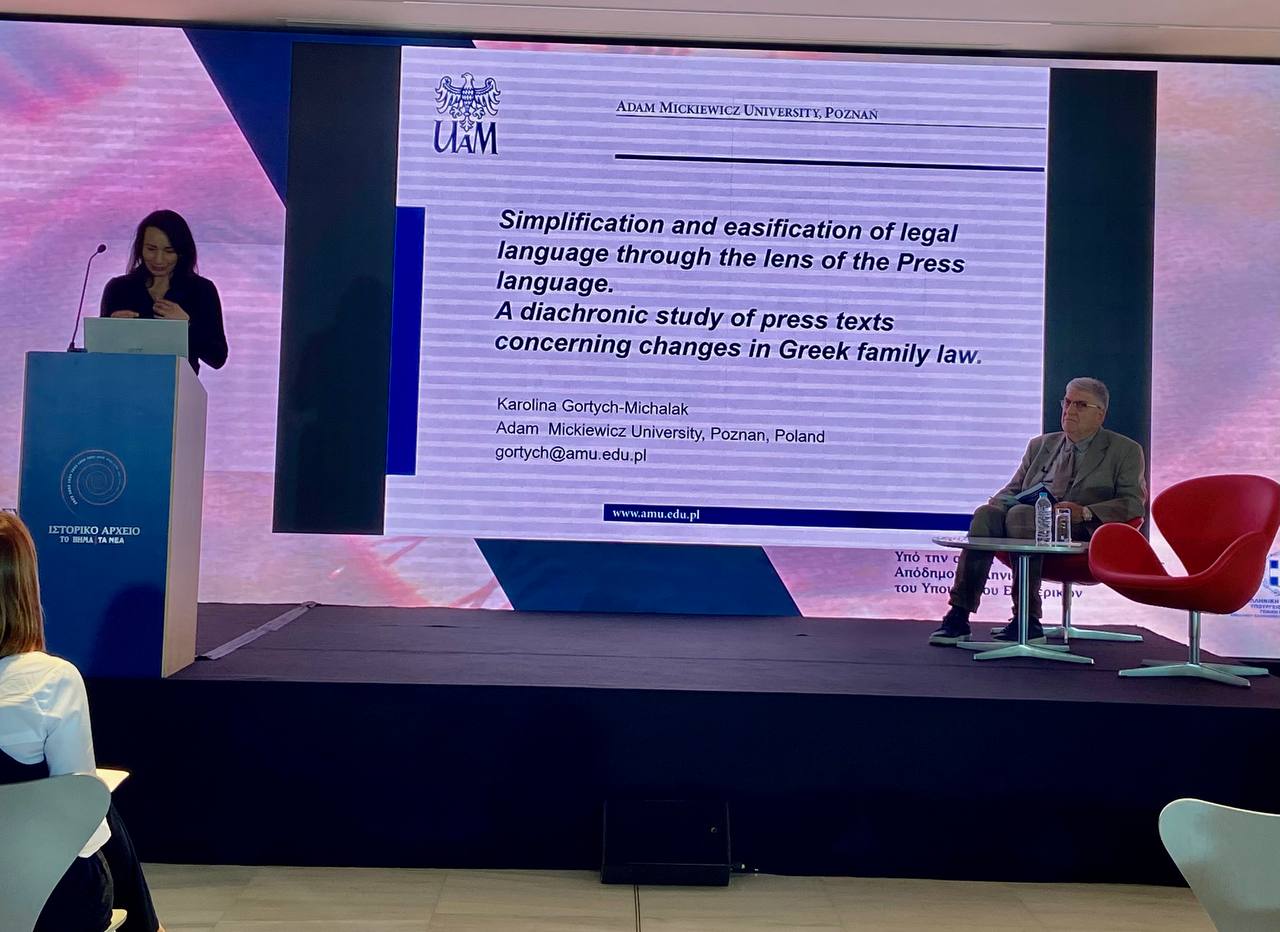 Για τη απλούστευση της νομικής γλώσσας μέσα από τον φακό του Τύπου αναφέρθηκε η μεταδιδακτορική ερευνήτρια του Πανεπιστημίου Adam Mickiewicz, Πόζναν, Πολωνία Gortych-Michalak Karolina. Ανέλυσε τη σχετική έρευνα που έχει κάνει με κείμενα των ιστορικών εφημερίδων.