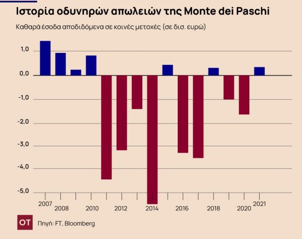 Ωστόσο, το κράτος δεν έχει πολλά να δείξει για τα 20 δισεκατομμύρια ευρώ σε κρατική βοήθεια και ιδιωτικά κεφάλαια που διοχετεύθηκαν στην MPS τα τελευταία 15 χρόνια.