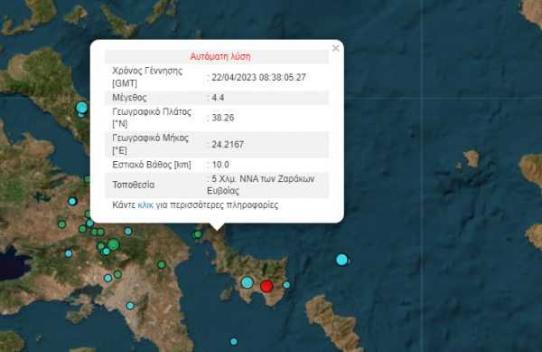 Όπως αναφέρει το Γεωδυναμικό Ινστιτούτο Αθηνών, ο σεισμός καταγράφηκε στα 6 χιλιόμετρα νοτιοανατολικά από τους Ζάρακες στην Εύβοια και το εστιακό του βάθος εντοπίζεται στα 5 χιλιόμετρα.