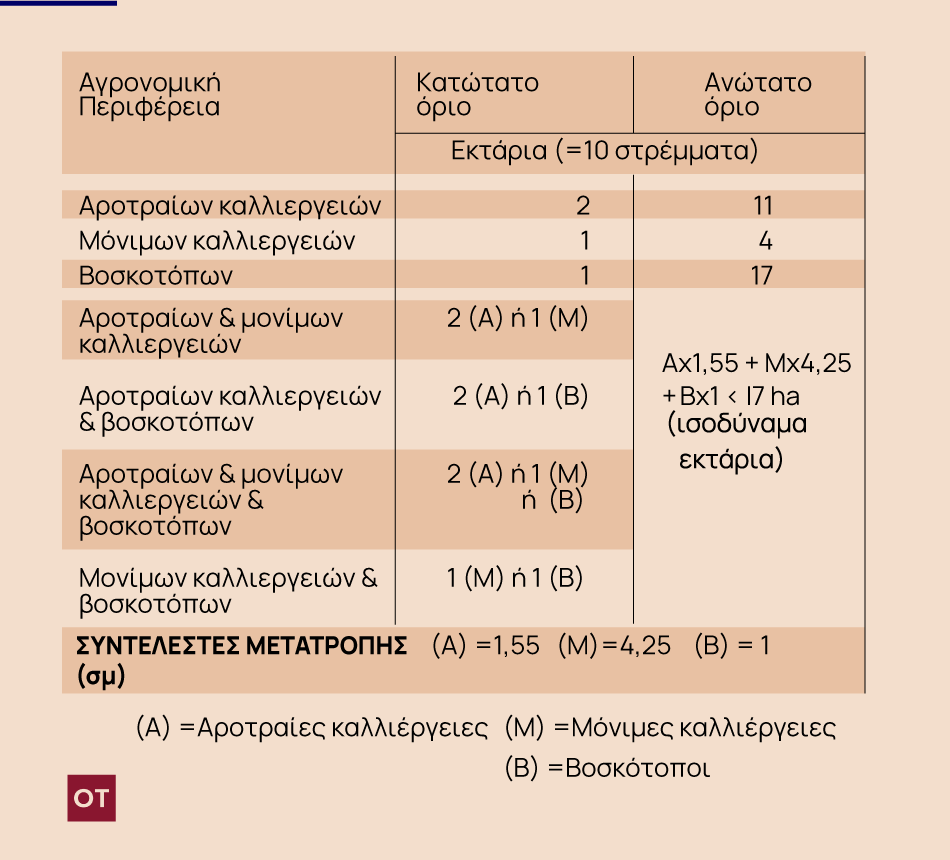 Τα κατώτερα και ανώτερα όρια εκμετάλλευσης αμιγώς και μικτών εκμεταλλεύσεων έχουν ως εξής:
