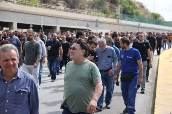 Με πορεία οι εργαζόμενοι κατευθύνθηκαν από την Ζώνη στο υπουργείο Ναυτιλίας στο πλαίσιο της 24ωρης απεργίας που έχουν κηρύξει για τον θάνατο ενός 47χρονου συναδέλφου τους την ώρα της δουλειάς.