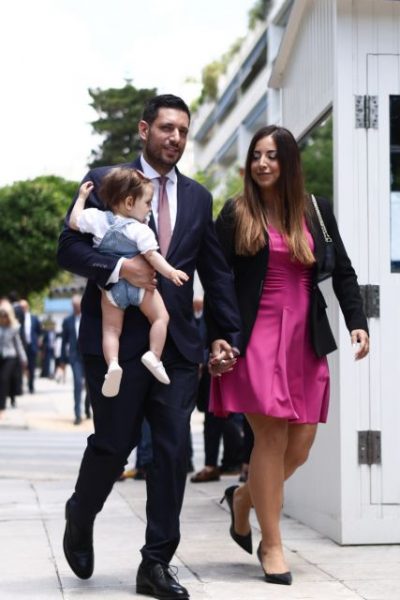 Αγκαλιά με το παιδί του προσήλθε ο νεότερος υπουργός της κυβέρνησης, Κωνσταντίνος Κυρανάκης.