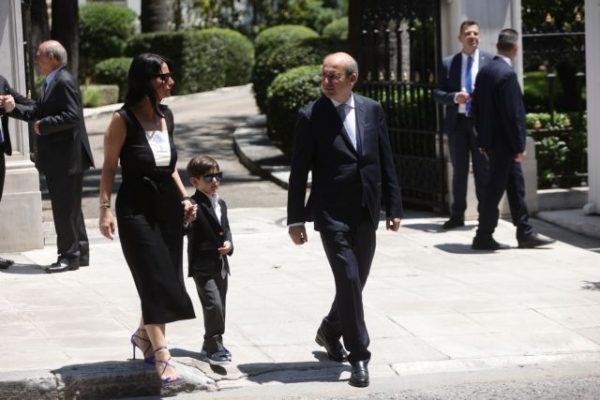 Ο Κωστής Χατζηδάκης junior έκλεψε τα φωτογραφικά φλας καθώς προσήλθε με τους γονείς τους στο Προεδρικό, φορώντας γυαλί ηλίου.