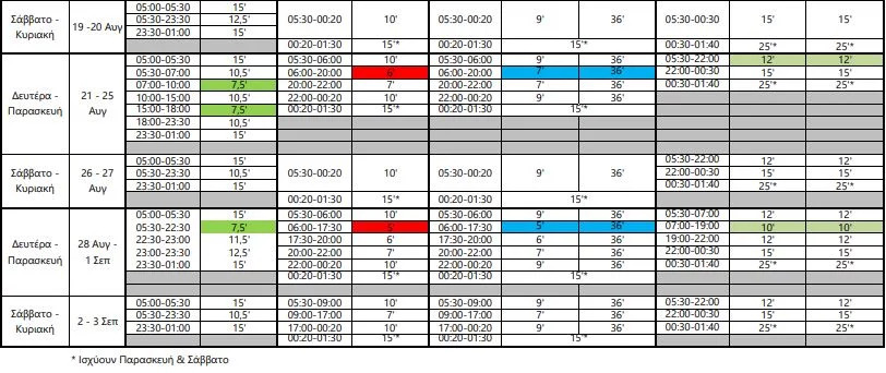 Διαφορετικό θα είναι από τη Δευτέρα 10 Ιουλίου, το πρόγραμμα των δρομολογίων στο Μετρό και το Τραμ, καθώς τίθεται σε ισχύ το θερινό πρόγραμμα. Η αλλαγή αφορά τα μέσα σταθερής τροχίας (Γραμμές 1, 2 και 3 του μετρό και το τραμ) και το νέο πρόγραμμα θα έχει ισχύ έως και την Κυριακή 3 Σεπτεμβρίου.