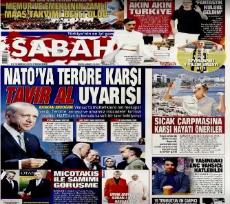 Η Σύνοδος του ΝΑΤΟ είναι το κεντρικό θέμα στον τουρκικό Τύπο, καθώς η Άγκυρα είχε πρωταγωνιστικό ρόλο στο Βίλνιους κυρίως για το ζήτημα της ένταξης της Σουηδίας αλλά και για τα F-16 που αναμένεται να προμηθευτεί από τις ΗΠΑ.
