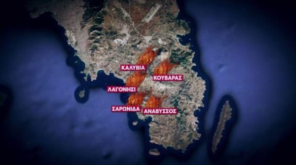Φωτιά στον Κουβαρά: Ανεξέλεγκτο το πύρινο μέτωπο – Eκκενώνονται Λαγονήσι, Σαρωνίδα, Ανάβυσσος