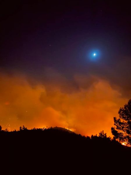 Πώς φαίνεται η φωτιά από τον Ελαιώνα. Δύσκολη θα είναι η νύχτα στην περιοχή αφού η πυρκαγιά μαίνεται ανεξέλεγκτη.