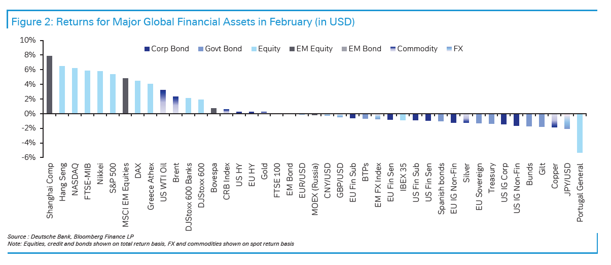 Αυτό δεν σημαίνει ότι το +4,2% που σημείωσε το ΧΑ ήταν αμελητέα, εντούτοις ο Φεβρουάριος ήταν ένας ισχυρός μήνας για τα στοιχεία ενεργητικού κινδύνου, με αρκετούς σημαντικούς μετοχικούς δείκτες σε υψηλά ρεκόρ.