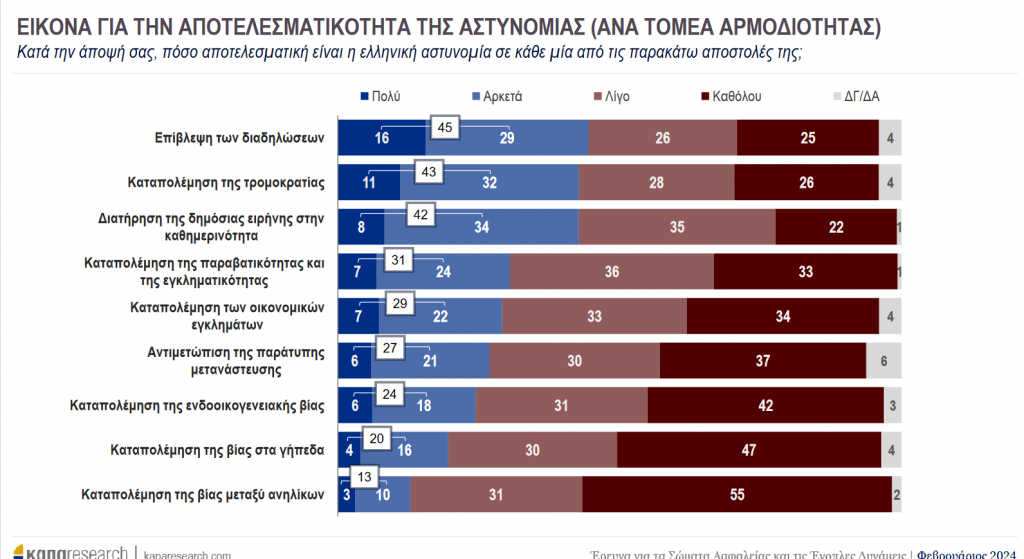 Ωστόσο, σύμφωνα με την «Κάπα Research» που διενήργησε την έρευνα, τα ποσοστά της αστυνομίας αποτελούν μια «αρκετά ικανοποιητική καταγραφή».