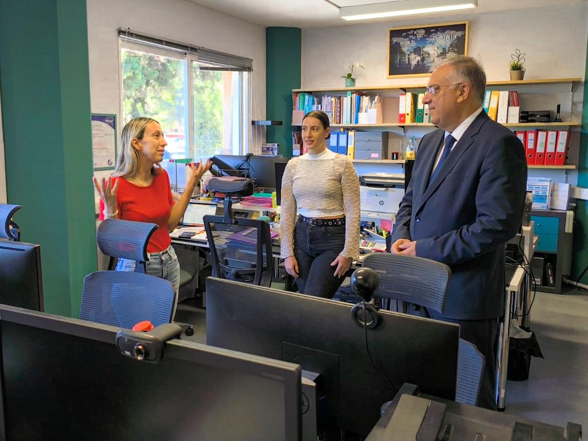 O κ. Θεοδωρικάκος επισκέφτηκε τον πρώτο στη χώρα ολοκληρωμένο πιλοτικό σταθμό παραγωγής, αποθήκευσης, συμπίεσης και χρήσης πράσινου υδρογόνου για τη φόρτιση ελαφρών οχημάτων. Περιηγήθηκε, επίσης, στις πρότυπες εγκαταστάσεις της βιοτεχνολογικής εταιρίας Solmeyea, η οποία πρόσφατα κατάφερε να γίνει δεκτή στο EIC (European Innovation Council) Accelerator program.