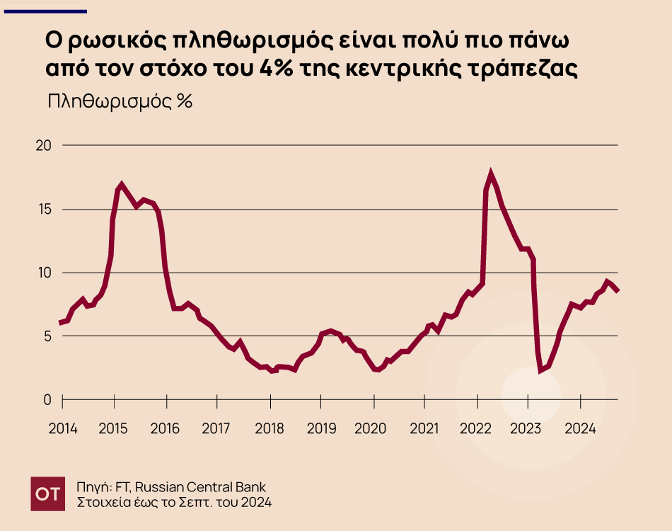 Ο Πούτιν κάλεσε τους αξιωματούχους να σταθεροποιήσουν την οικονομία της Ρωσίας και η κεντρική τράπεζα αύξησε το βασικό επιτόκιο σε 21 μονάδες ρεκόρ τον Οκτώβριο. Ωστόσο, δεν έχει δείξει καμία πρόθεση για μείωση των δαπανών για την άμυνα, οι οποίες προϋπολογίστηκαν σε ρεκόρ 13,5 τρισεκατομμυρίων Rbs (145 δισεκατομμύρια δολάρια) για το επόμενο έτος, ωθώντας την οικονομία πέρα από τις δυνατότητές της, όπως είπε η Ελίνα Ριμπάκοβα, ανώτερη συνεργάτης