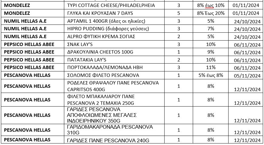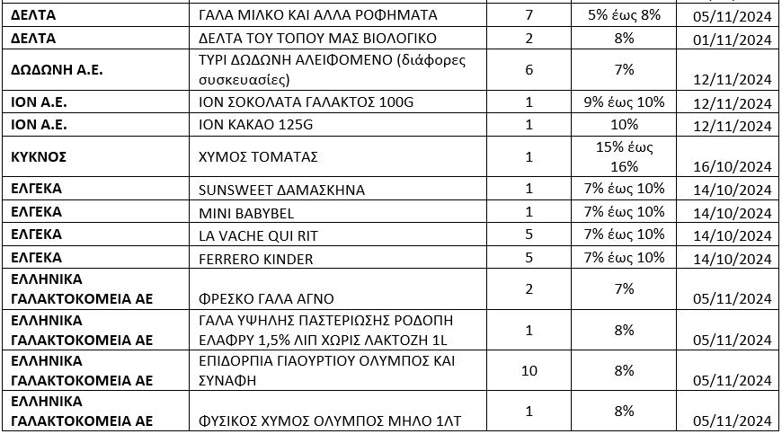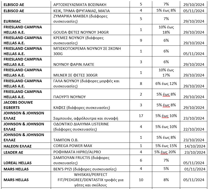 Υπενθυμίζεται ότι η προηγούμενη λίστα με τους κωδικούς προϊόντων που είχαν ενταχθεί στην πρωτοβουλία μείωσης τιμών, περιλάμβανε 362 κωδικούς προϊόντων και οι μειώσεις διαμορφώνονταν από 5% έως 24%.