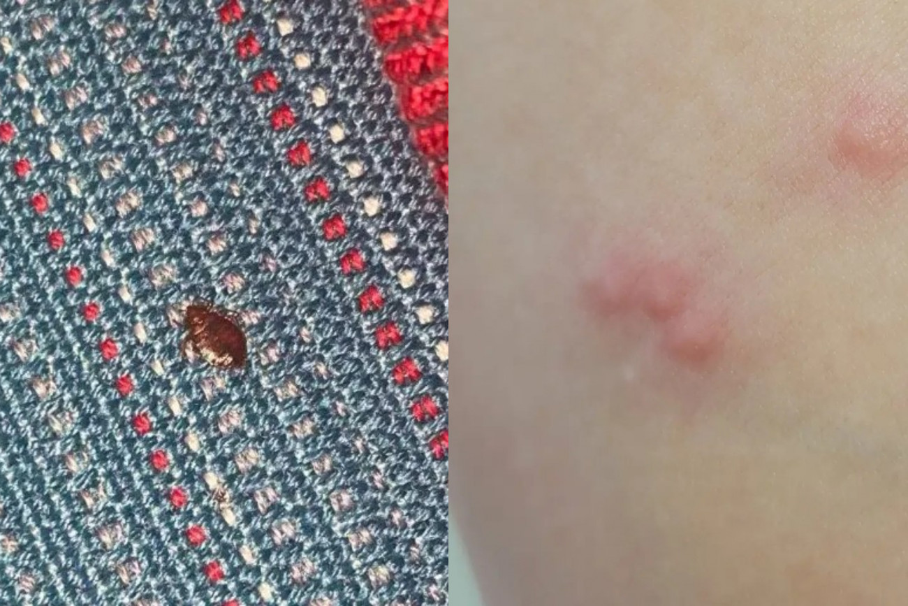 Κοριός πάνω σε κουβέρτα σε πτήση της Turkish Airlines, αριστερά, και δεξιά τσιμπήματα στο δέρμα της Kristin Bourgeois (Πηγή: New York Times)