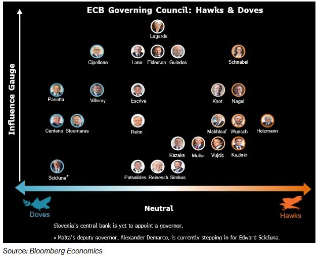 Στον αντίποδα, η πιο «περιστερίσια» στάση δείχνει περαιτέρω μειώσεις: Ο διοικητής της Τράπεζας της Γαλλίας Φρανσουά Βιλερουά ντε Γκαλό, είπε ότι «θα μπορούσαμε να είμαστε στο 2% αυτό το ερχόμενο καλοκαίρι» και ο Πιέρο Τσιπολόνε, μέλος της Εκτελεστικής Επιτροπής, ανέφερε την παράλληλη χαλάρωση της ΕΚΤ από προηγούμενα μέτρα τόνωσης ως λόγο για πιο επιθετική χαλάρωση.