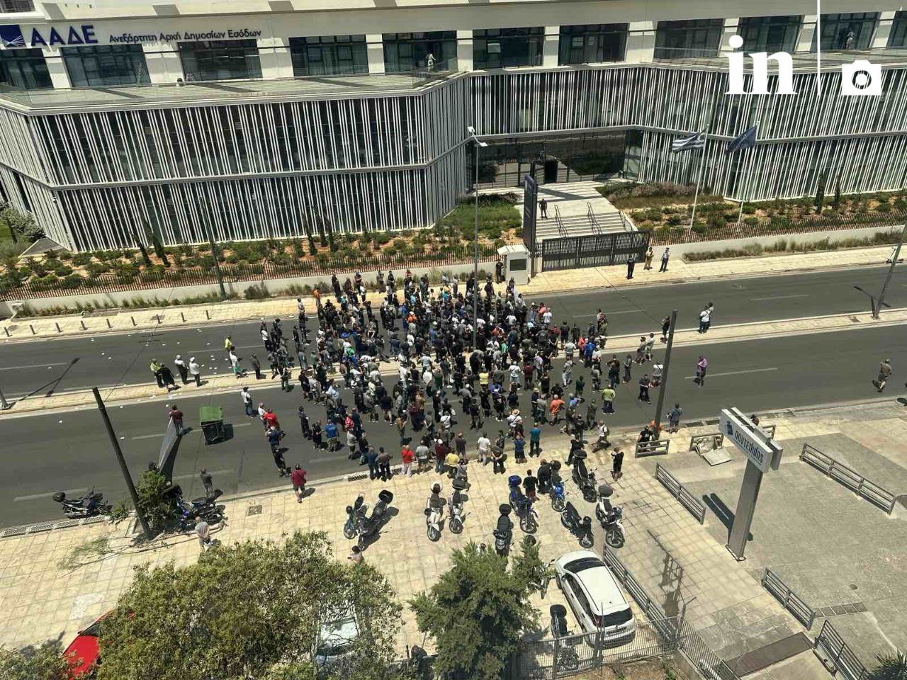 Φωτογραφίες του in από το σημείο της διαμαρτυρίας έξω από την ΑΑΔΕ, στην Πειραιώς.