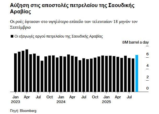 Το Ριάντ αύξησε τις εξαγωγές τον Ιούνιο, όταν οι προμήθειες απειλήθηκαν από τη σύγκρουση μεταξύ Ιράν και Ισραήλ, αν και μειώθηκαν τους επόμενους μήνες. Ο ΟΠΕΚ+ θα αποφασίσει για τις επόμενες κινήσεις παραγωγής του αυτό το Σαββατοκύριακο, και οι τιμές του πετρελαίου στη Μέση Ανατολή έχουν υποχωρήσει τις τελευταίες ημέρες.