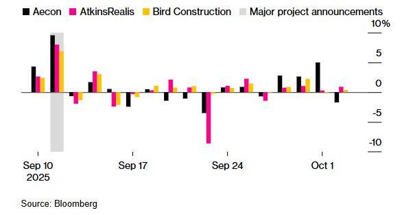 «Όταν κατασκευάζεις τέτοιου είδους υποδομές, οι αξίνες και τα φτυάρια είναι αυτά που παίρνουν πρώτα ώθηση», δήλωσε η Λόρα Λάου, επικεφαλής επενδύσεων στην Brompton Corp. , η οποία διαχειρίζεται πάνω από 3 δισεκατομμύρια καναδικά δολάρια (2,1 δισεκατομμύρια δολάρια). Είπε ότι οι κατασκευαστικές εταιρείες είναι επίσης πιθανό να κερδίσουν περαιτέρω.