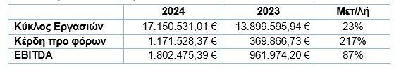Έκρηξη 87% στα EBITDA κατέγραψε η Σουρωτή το 2024, όπου ανήλθαν στα 1,8 εκατ. ευρώ έναντι 961.974,2 ευρώ το 2023.