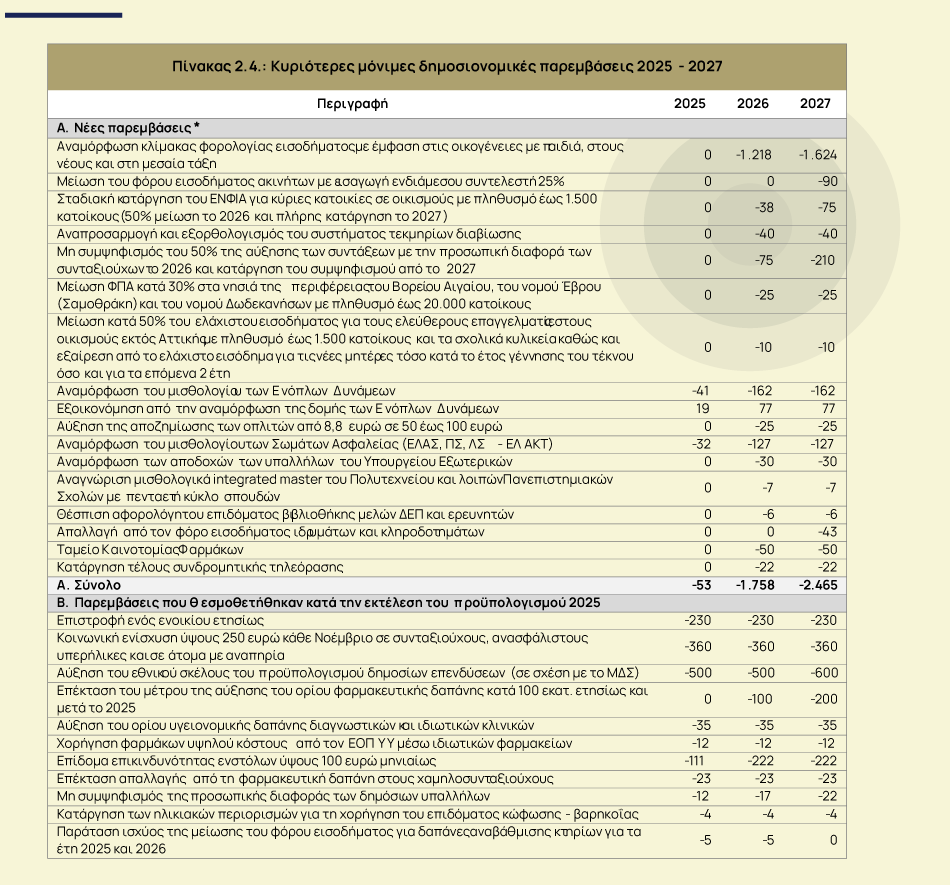 Για το 2026 θεσπίζονται οι ακόλουθες νέες παρεμβάσεις: