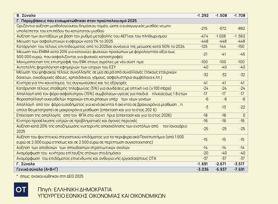 Για το 2026, πέραν των ωφελειών που θα έχουν οι δημόσιοι υπάλληλοι από τη φορολογική μεταρρύθμιση, εφαρμόζονται οι ακόλουθες παρεμβάσεις ύψους 613 εκατ. ευρώ: