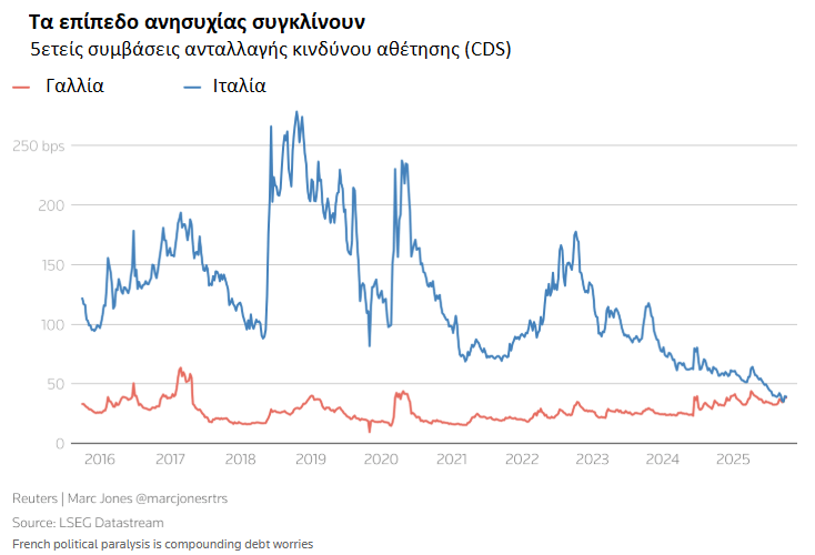 Πέρα από τα εμπορεύματα, οι επενδυτές βρίσκονται σε αναταραχή με το τι θα ακολουθήσει στη Γαλλία. Οι αγορές έχουν τρομοκρατηθεί, με το ασφάλιστρο κινδύνου στις αποδόσεις των γαλλικών κρατικών ομολόγων να πλησιάζει το υψηλό εννέα μηνών.