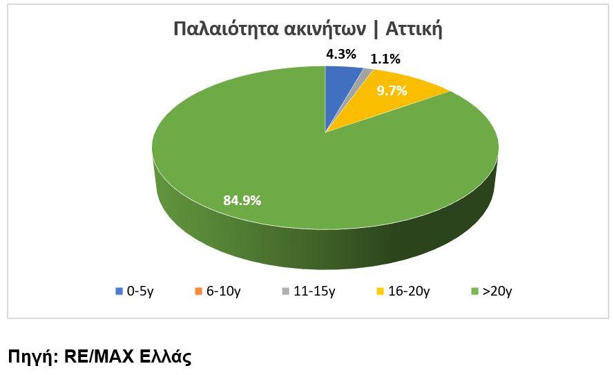 Όσον αφορά στην ηλικία των ακινήτων, η πλειονότητα των μισθώσεων (84,9%) αφορά κατοικίες άνω των 20 ετών, ενώ για νεόδμητα ακίνητα ηλικίας έως 5 ετών οι μισθώσεις ανέρχονται σε μόλις 4,3% επί του συνόλου, γεγονός που αντανακλά το απόθεμα παλαιότερων ακινήτων που υπάρχει στην κτηματαγορά, αλλά και τις οικονομικές επιλογές των ενοικιαστών.