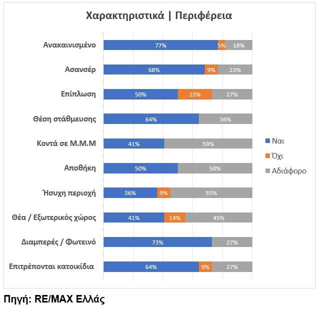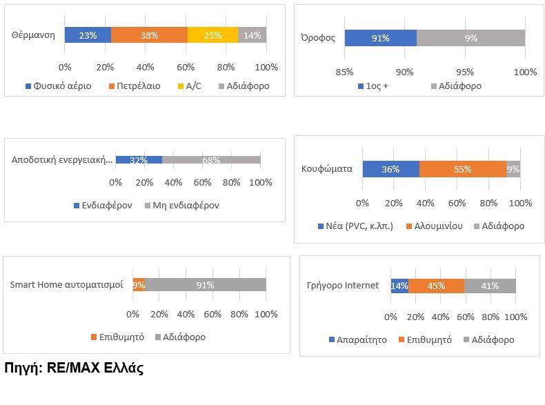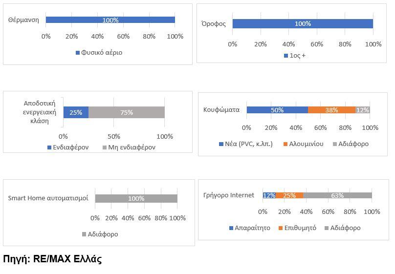 Ενδιαφέρον στοιχείο αποτελεί, επίσης, το γεγονός ότι οι ενδιαφερόμενοι ενοικιαστές, σε πανελλαδικό επίπεδο, αναζητούν κατοικίες φωτεινές και διαμπερείς, να είναι κοντά σε στάσεις Μέσων Μαζικής Μεταφοράς (ιδιαίτερα στα μεγάλα αστικά κέντρα), να διαθέτουν θέσεις στάθμευσης, αλλά και να διευκολύνεται η φιλοξενία των κατοικιδίων τους.